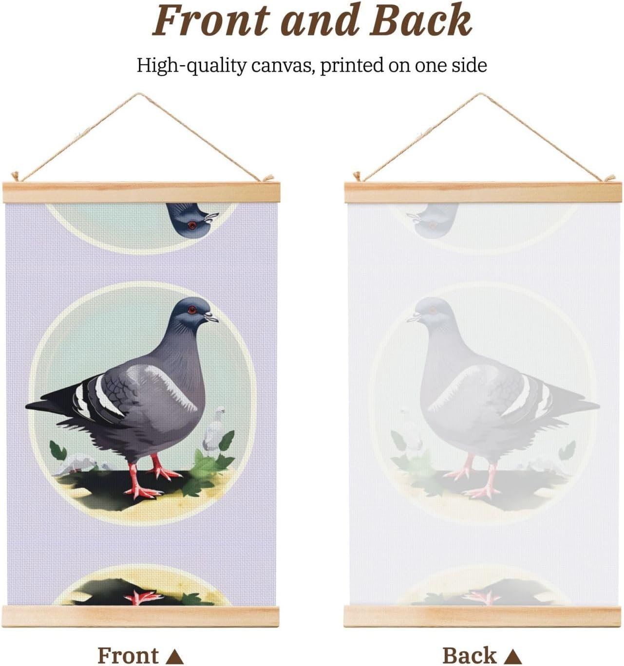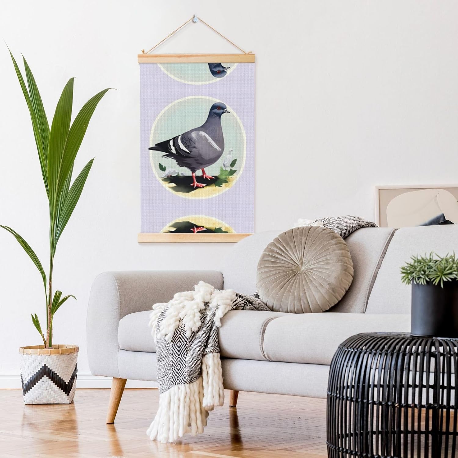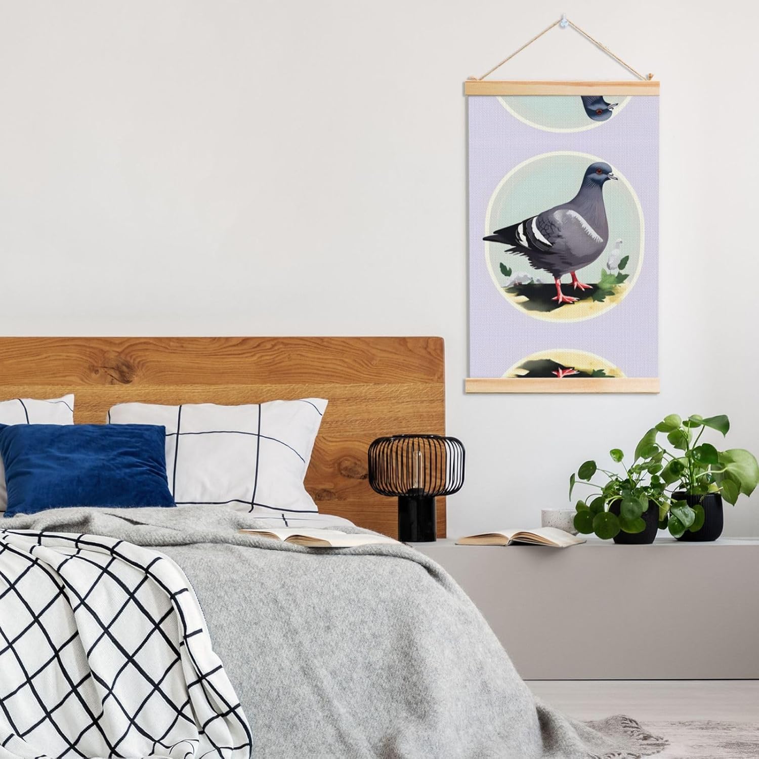 Our Grey Pigeon Print Print Wooden Poster Hanger Is An Excellent Addition To Your Home Decor Or A Perfect Gift For Friends And Family. Made Of Selected Quality Canvas With Brilliant And Enduring Colors, This Wall Art Is Designed To Resist Water, Dust, And Fading, Ensuring The Bright And Vibrant Art Lasts. The Polyester Is Enclosed Between Two Teak Wood Hanger Scrolls With An Attached 35cm Rope For Easy Hanging. Installation Is Made Simple With The Included Two Nails In A Plastic Box. The Modern Minimalist Style Of Our Wall Hanging Complements Any Home Decor, Elevating The Artistic Ambiance And Brightening Up The Room. Experience The Elegant Transformation This Wall Hanging Scroll Painting Brings To Your Spaces Today.