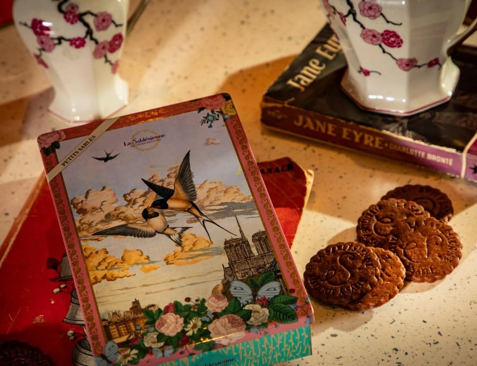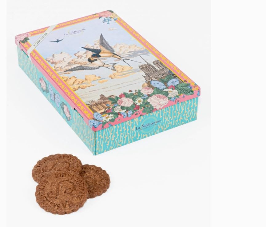 La Sablésienne, Ciel de Paris (Paris Sky) Petit Tin of French All Chocolate Shortbread Cookies, 150g (5.29 oz). 6 freshness bags of 4 cookies each.